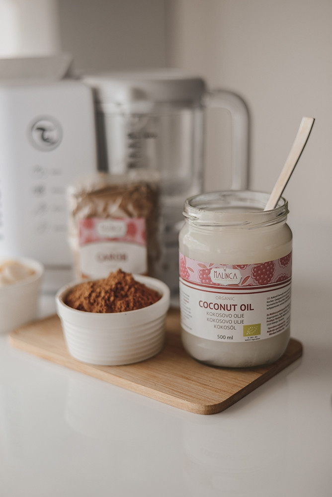 Sestavine: 100 % ekološko hladno stiskano ekstra deviško kokosovo olje.
