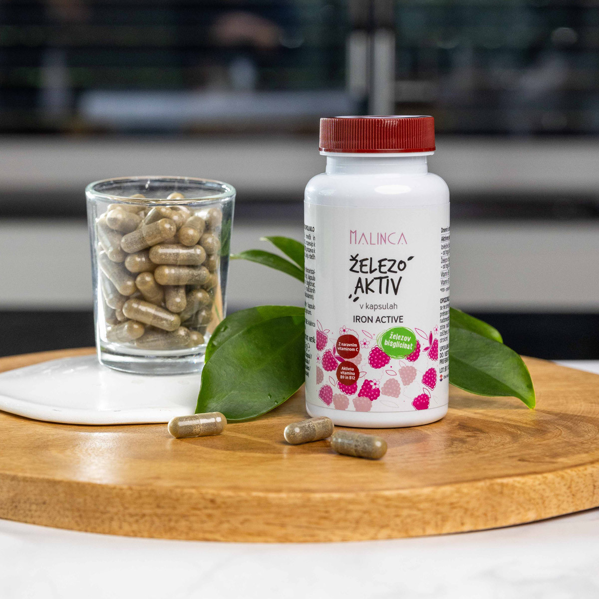 Železo Aktiv prehransko dopolnilo v kapsulah vsebuje železo v obliki bisglicinata, aktivni obliki vitaminov B9 in B12 ter vitamin C iz šipka. Pakiranje vsebuje 30 kapsul in zadostuje za 30 dni.