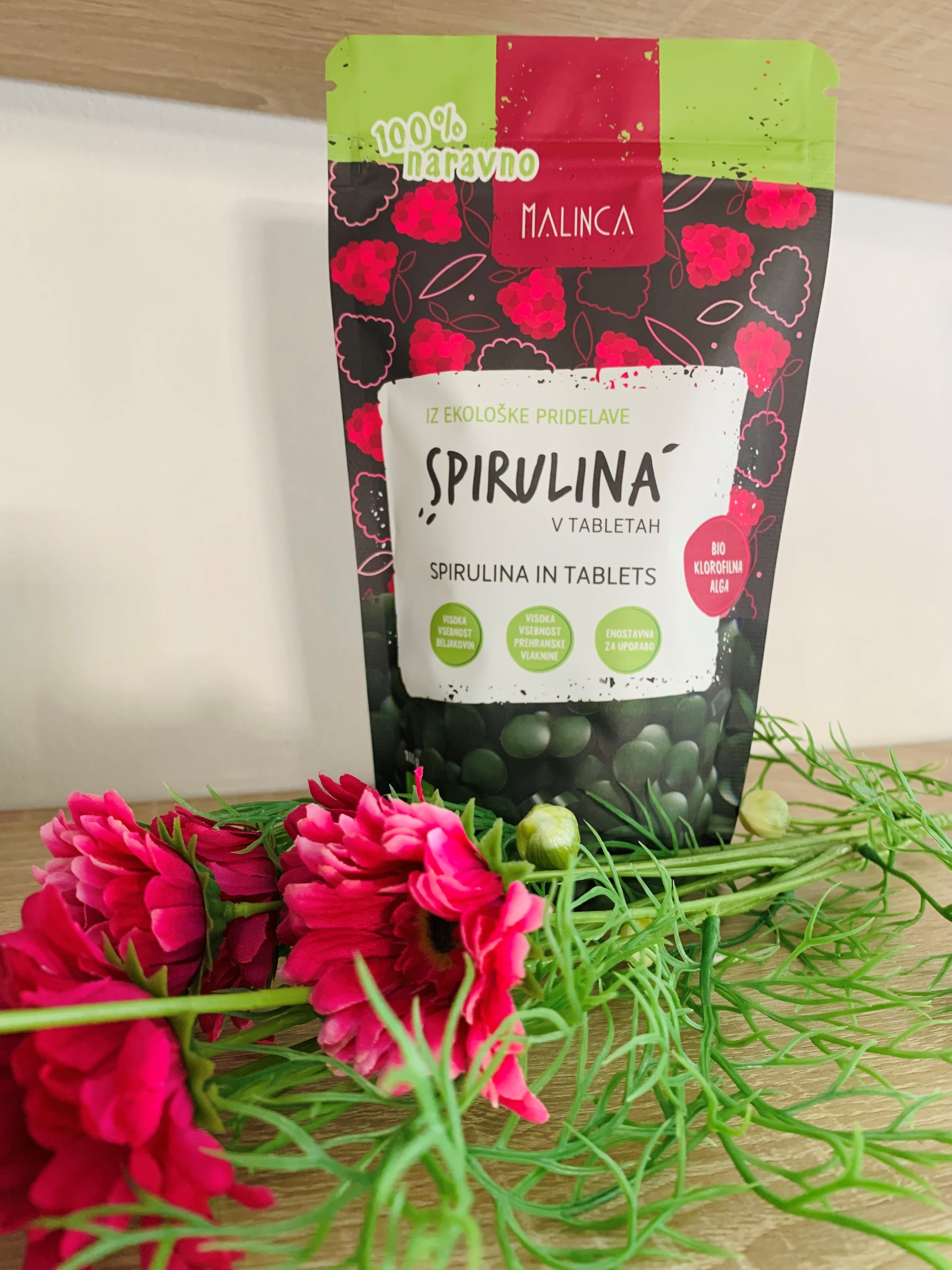 Spirulina v tabletah iz ekološke pridelave je modrozelena klorofilna alga z veliko vsebnostjo beljakovin. Modrozelena barva je posledica klorofila (zelena) in fikocianina (modra) v celični strukturi. Predstavlja eno najstarejših oblik življenja na Zemlji. Gre za preprosto enocelično vrsto modrozelenih cepljivk. Te so pred 3,6 bilijoni let pričele naš planet oskrbovati s kisikom. Modrozelene alge so bile torej tiste, ki so pričele vzpostavljati zemeljsko atmosfero, ki danes omogoča življenje na Zemlji.