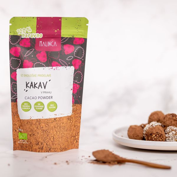 Aromatičen 100 % kakav v prahu, narejen iz oluščenih kakavovih zrn.