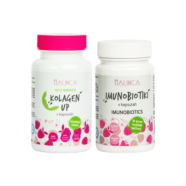 Ravno iz tega razloga smo se odločili, da ustvarimo popoln paket, ki bo za tvojo lepo kožo poskrbel na naraven način. Paket vsebuje Imunobiotike in Kolagen UP.